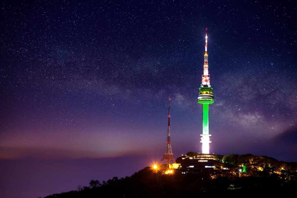 The N Seoul Tower sits on Namsan Mountain and offers panoramic views of Seoul. It has become a symbol of the city.